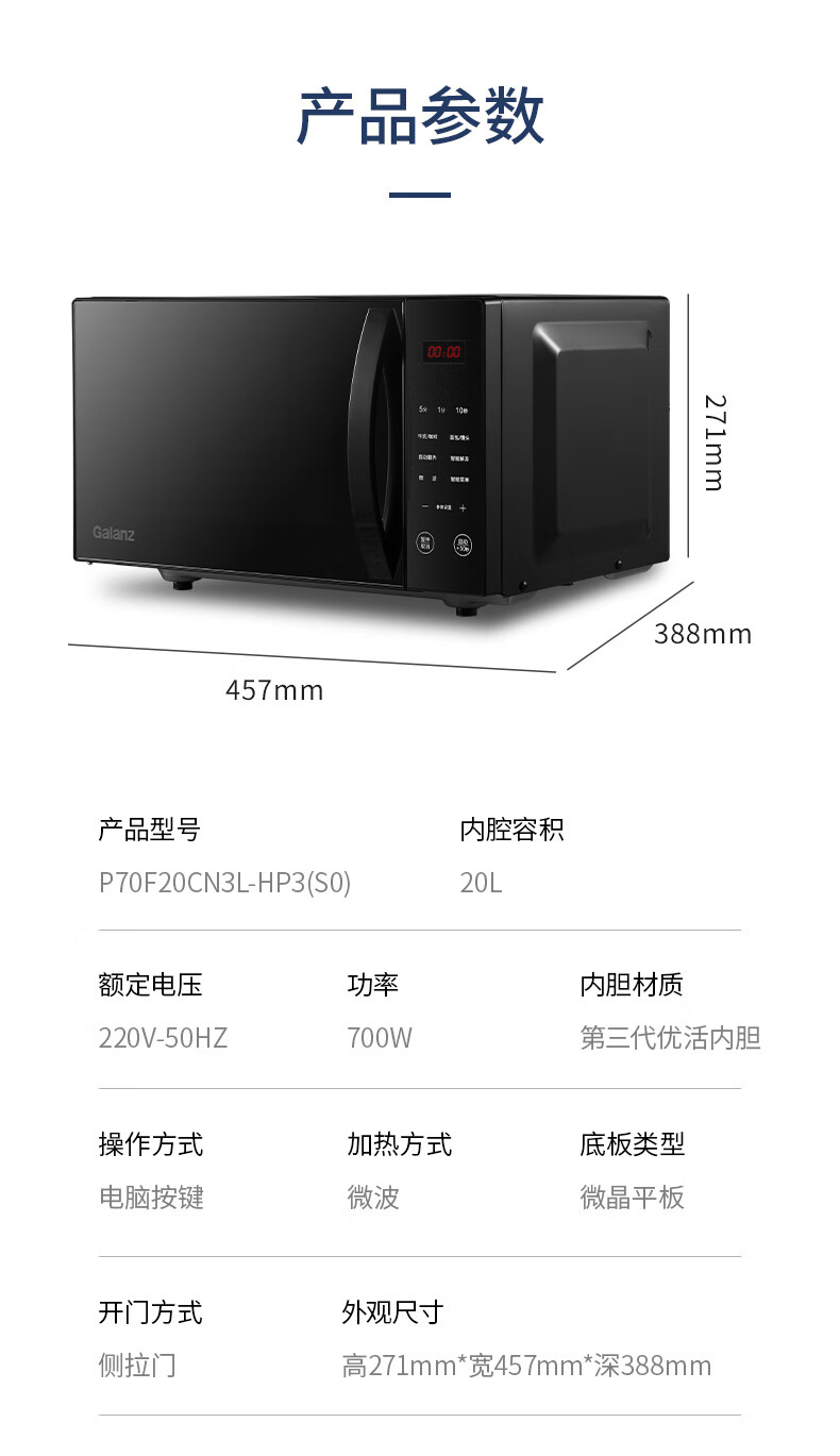 格兰仕微波炉家用 可预约多功能电脑按键 操作简单智能菜单P70F20CN3L-HP3(S0)(线下同款)