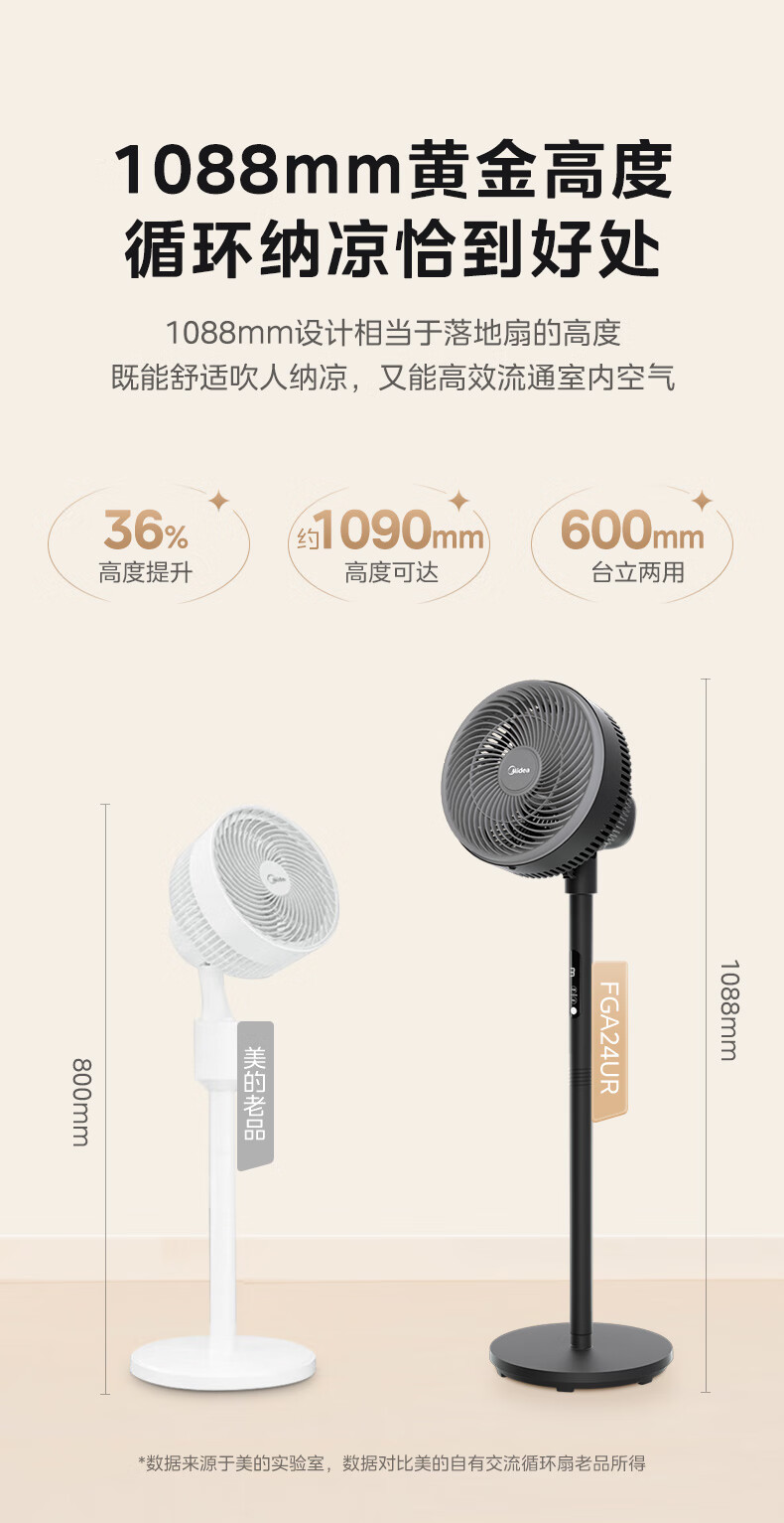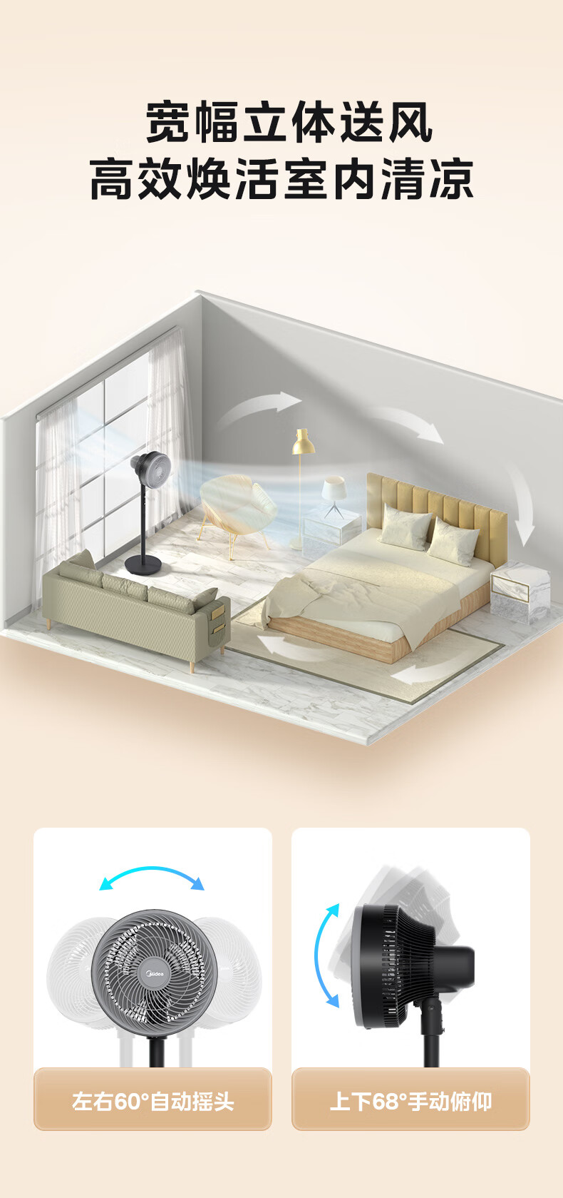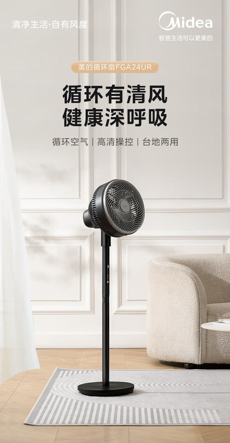 美的(Midea)空气循环落地扇 FGA24UR台立两用迷你小巧遥控远距送风轻音低噪驱蚊香薰(线下同款)