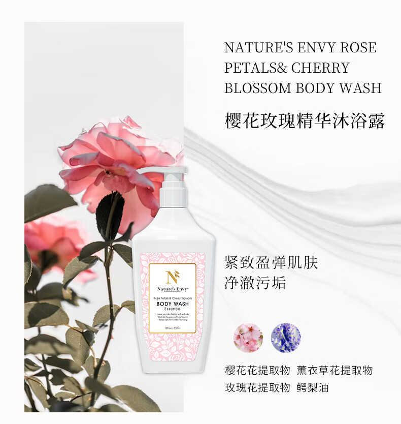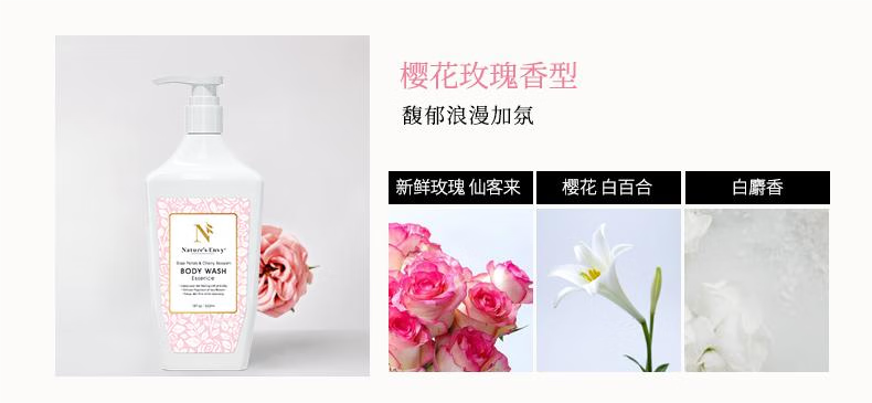 天然之扉 樱花玫瑰精华沐浴露532ml 植物萃取清洁肌肤花香氛型滋润沐浴乳 樱花玫瑰沐浴露532ml
