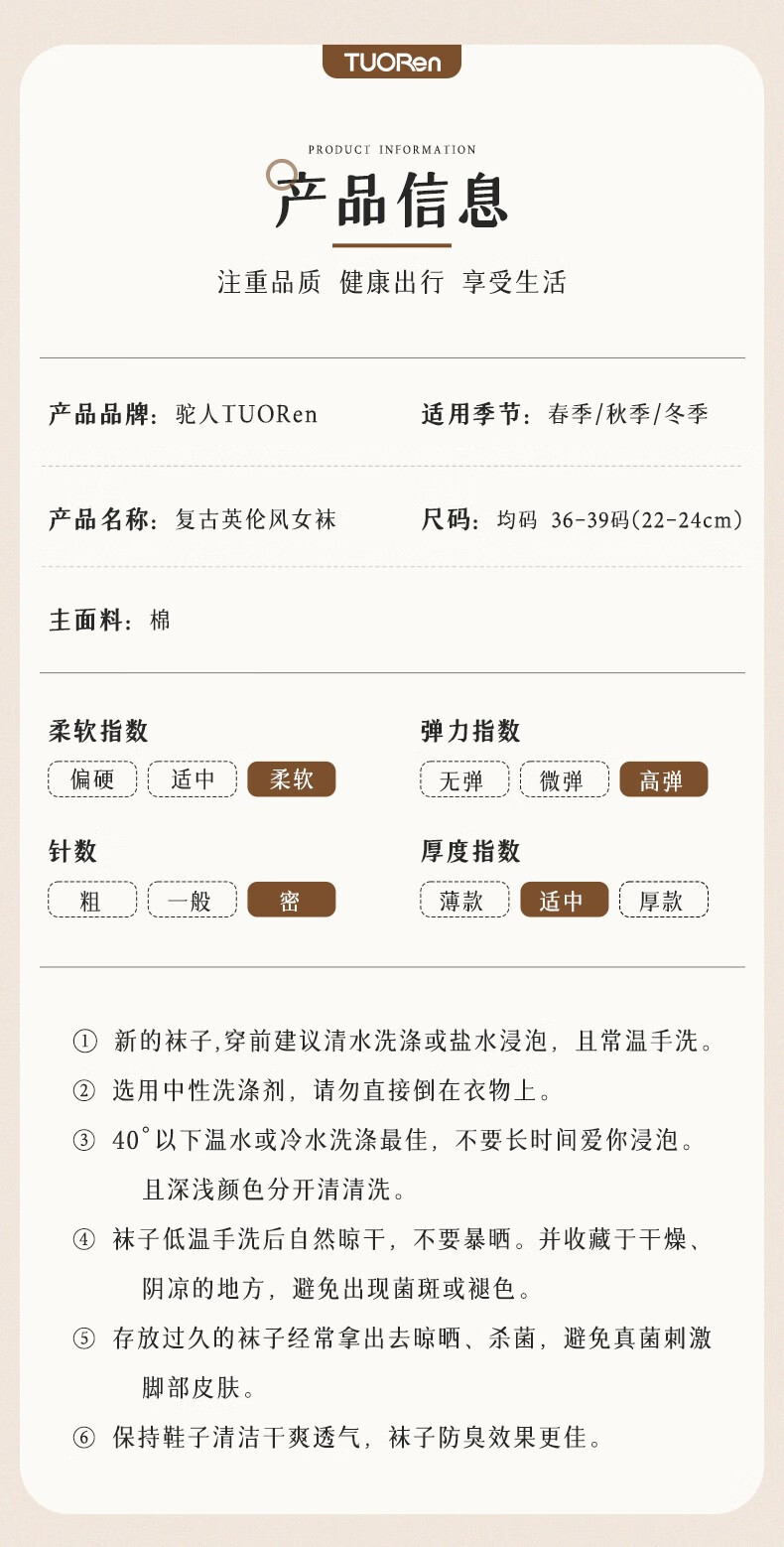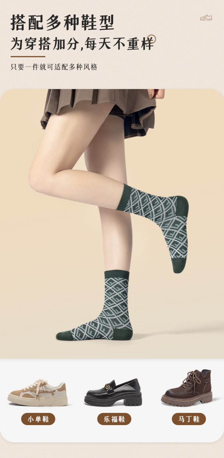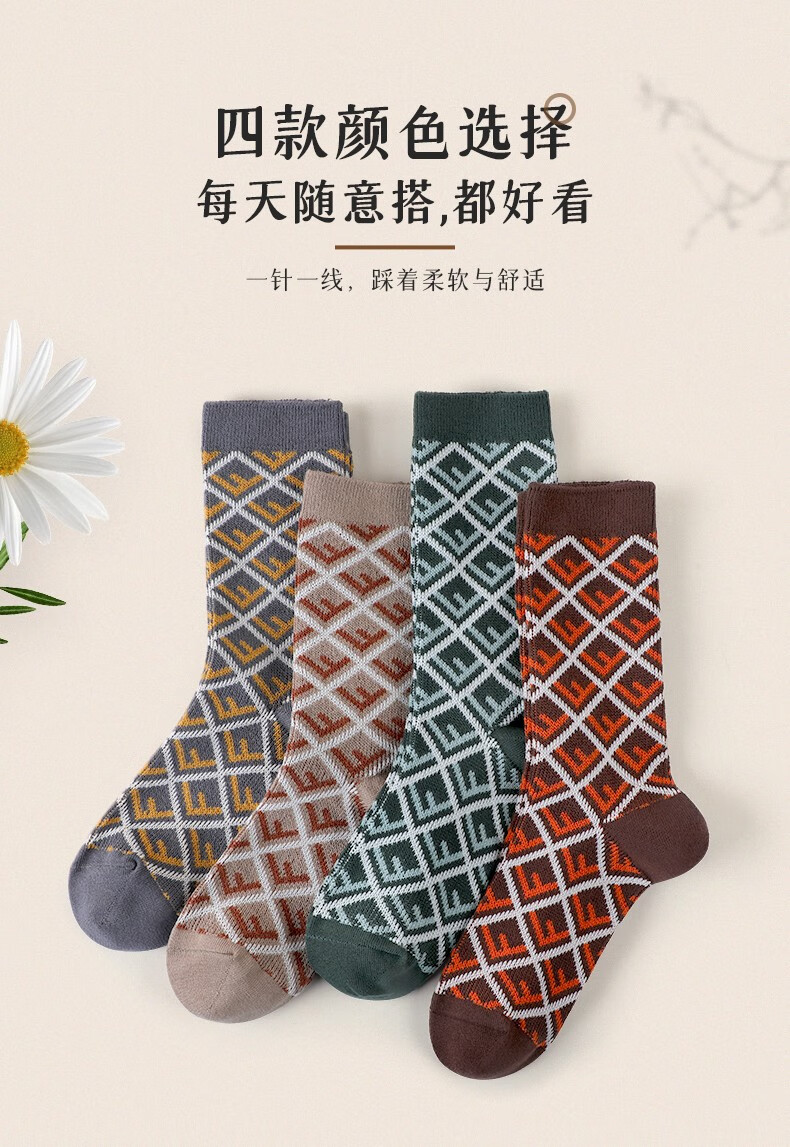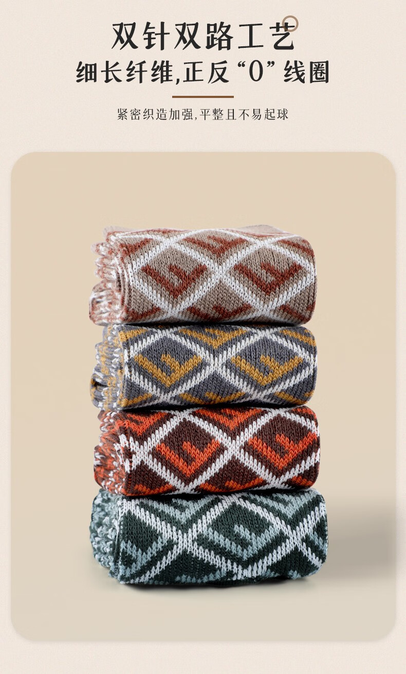 驼人康君女袜秋冬复古英伦风保暖高筒韩版吸湿棉堆堆祛味保暖混色4双 复古英伦风4色装【36-39】