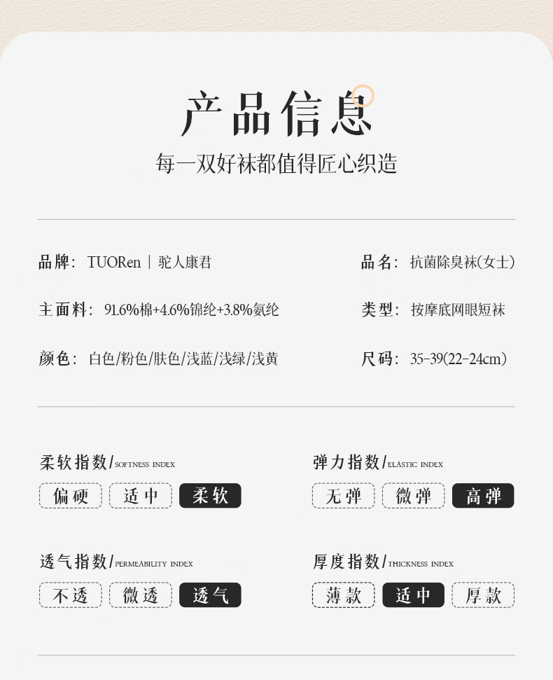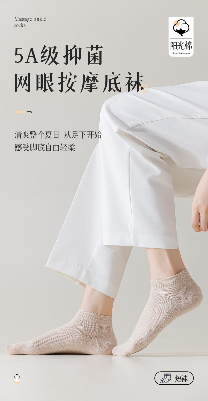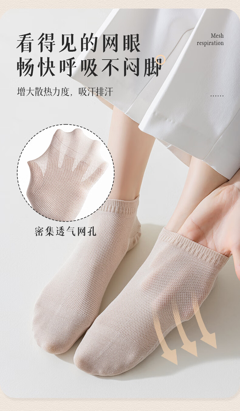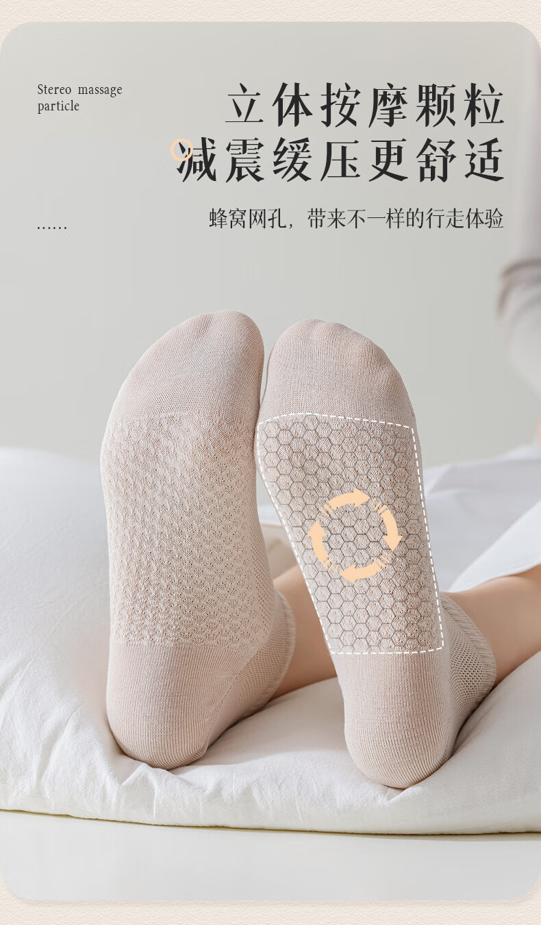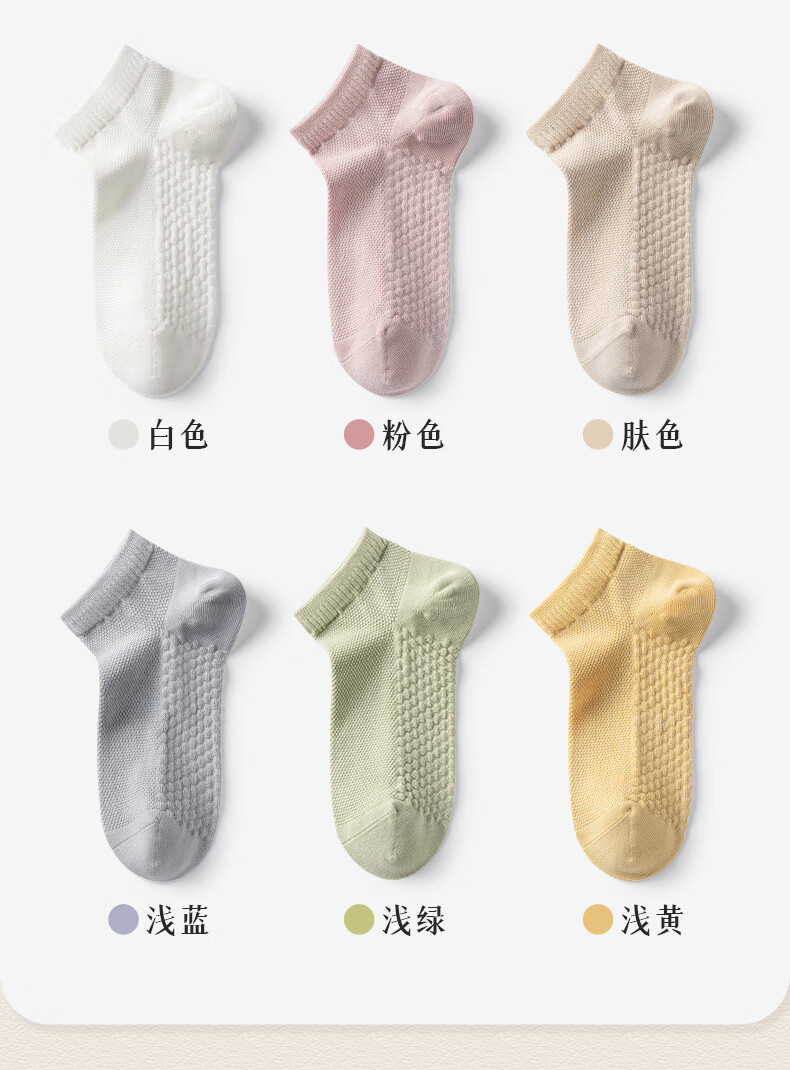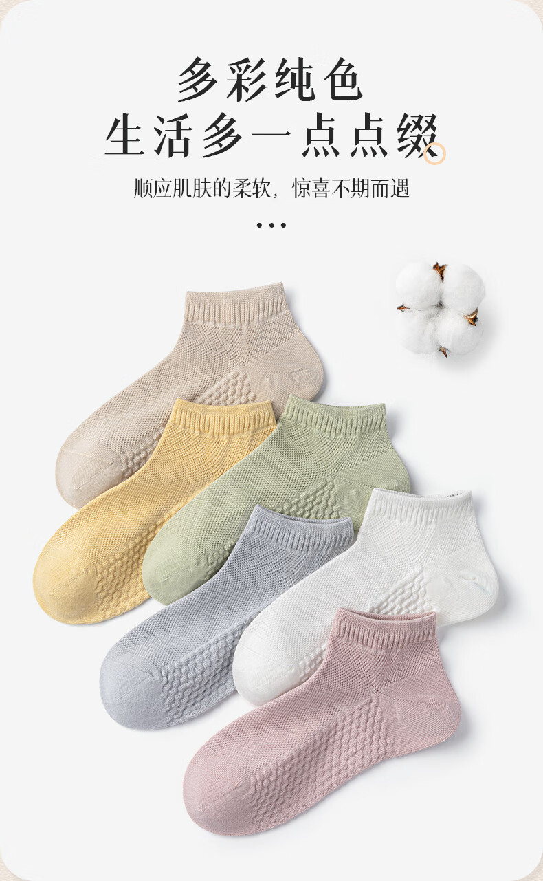 驼人康君按摩底女袜夏季薄款短袜吸汗网眼高棉夏低帮透气女学生军训 六色混装