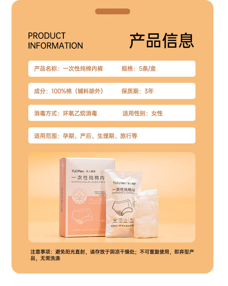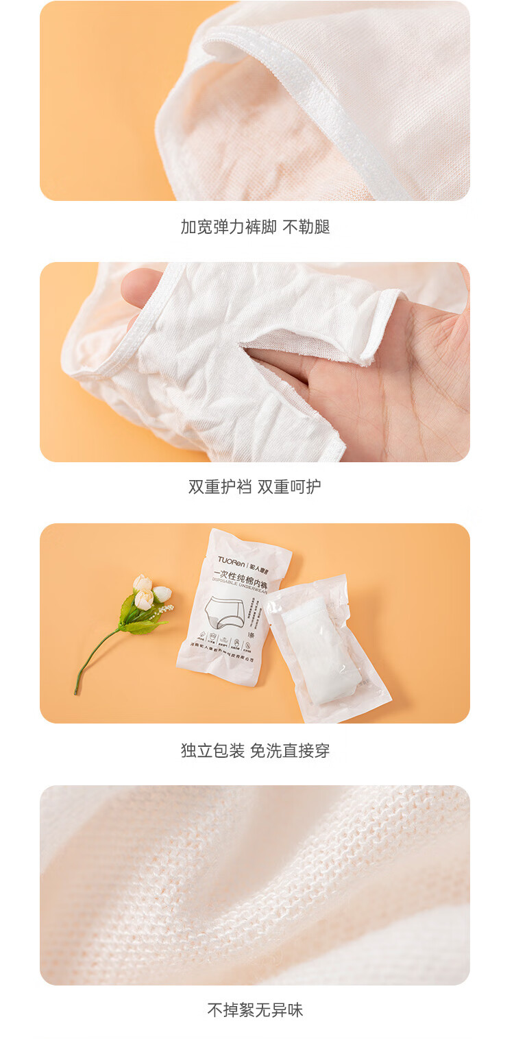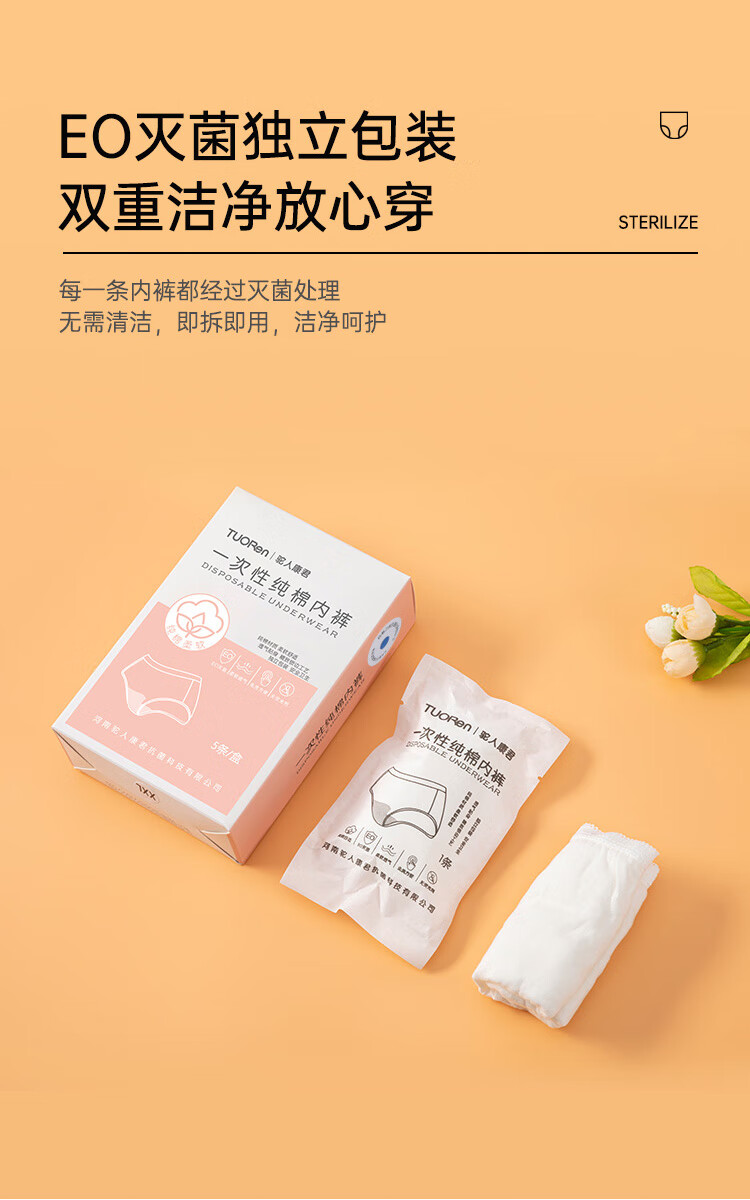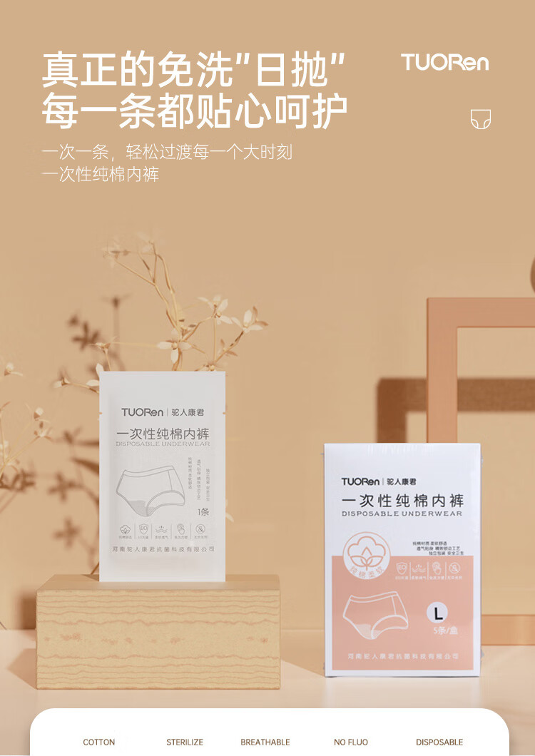驼人康君一次性内裤女纯棉日抛出差坐月子旅行免洗一次性军训开学5条装 白色 L