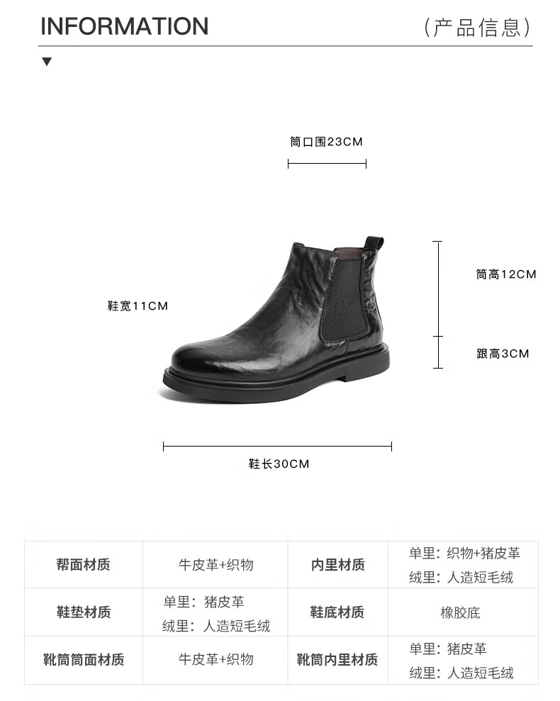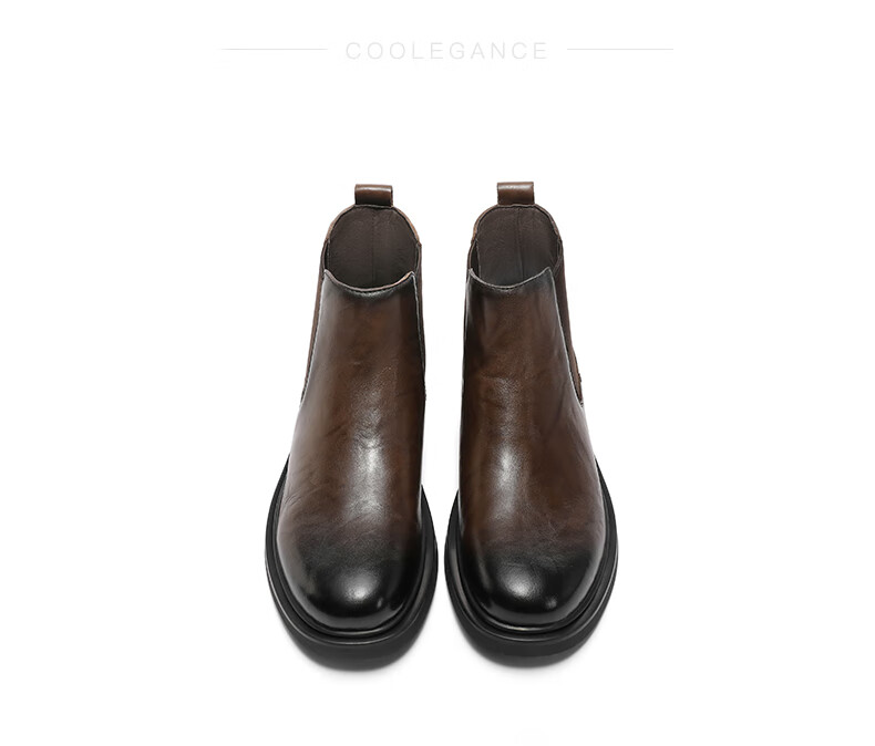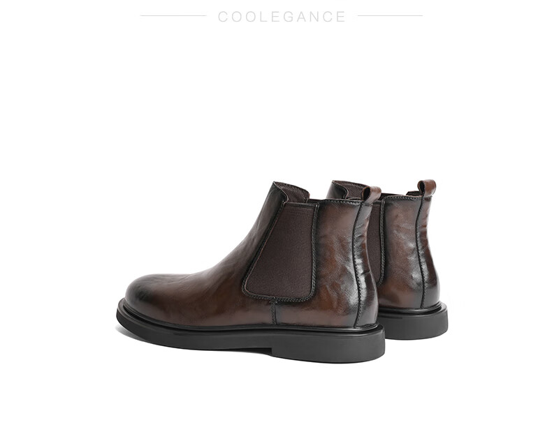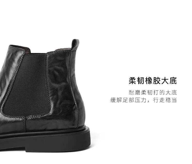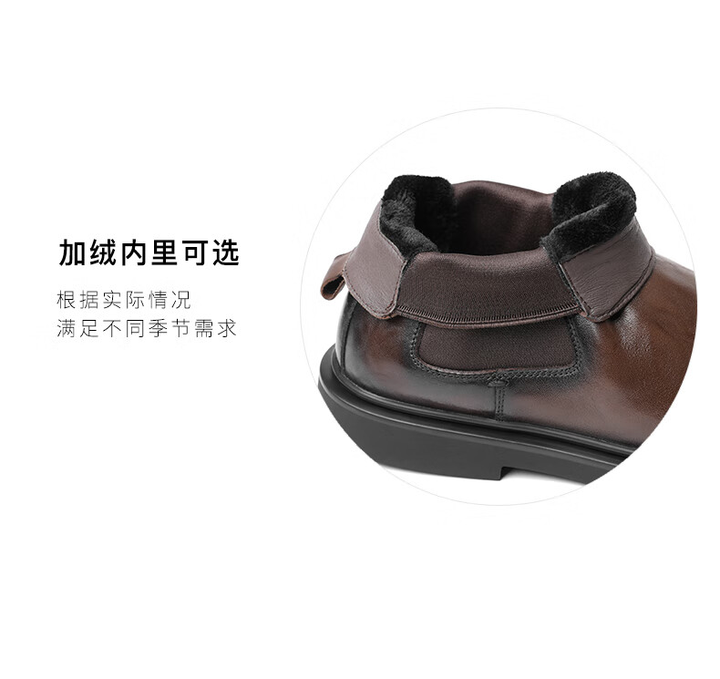百丽休闲靴男2023冬季新款英伦风切尔西靴马丁烟筒靴加绒A1264DD3 棕色-绒里 38
