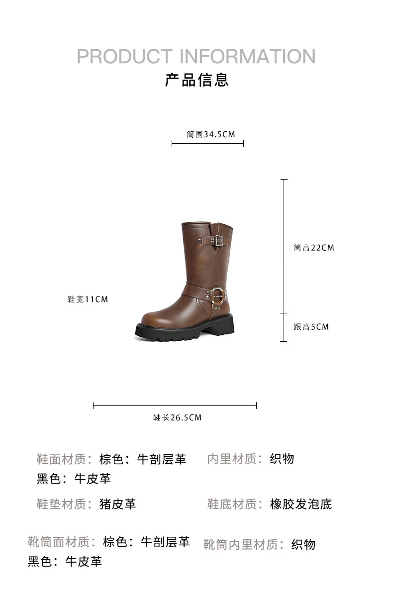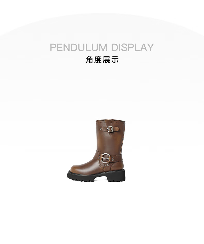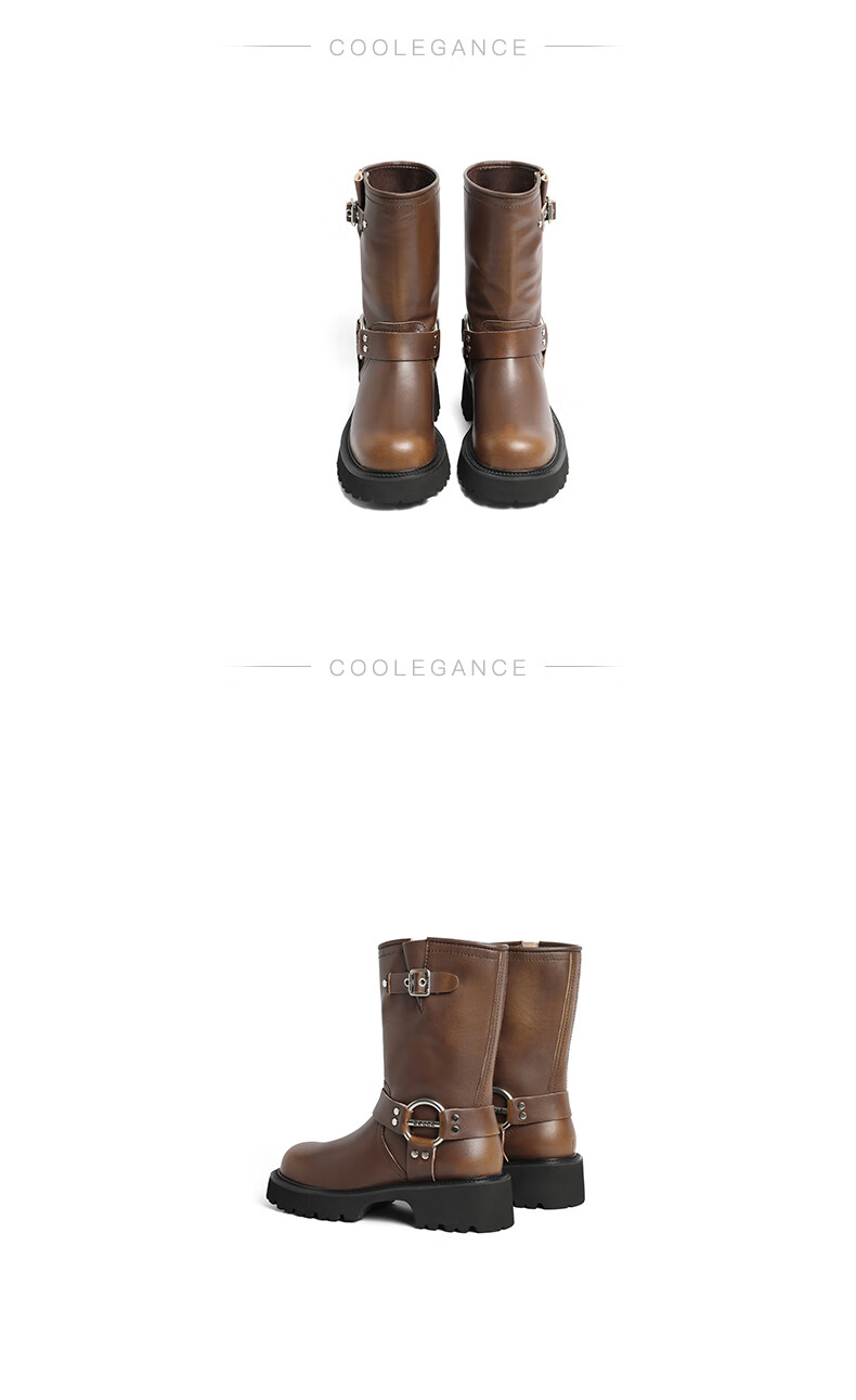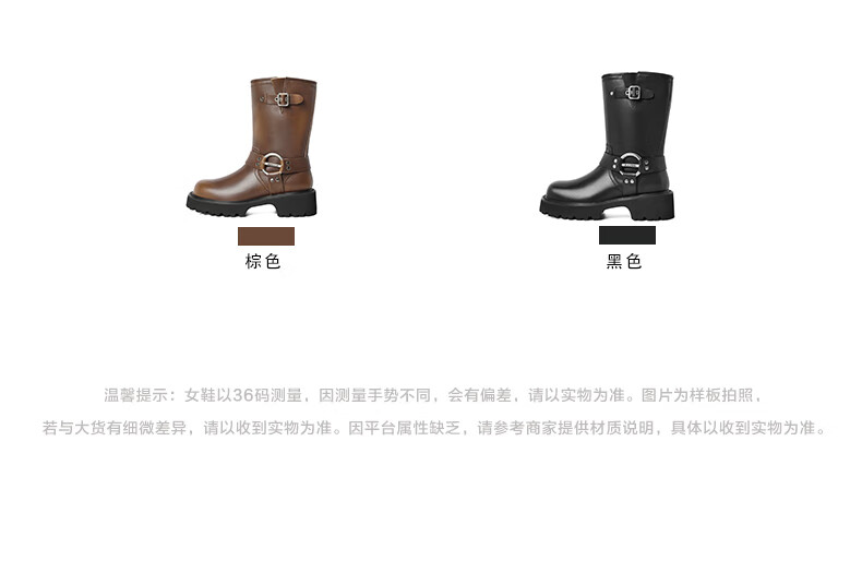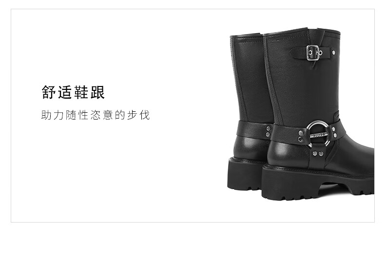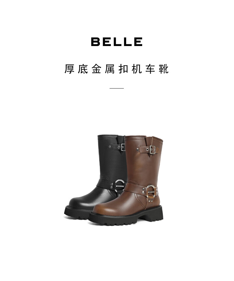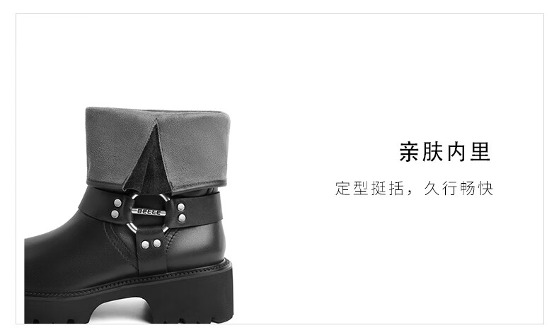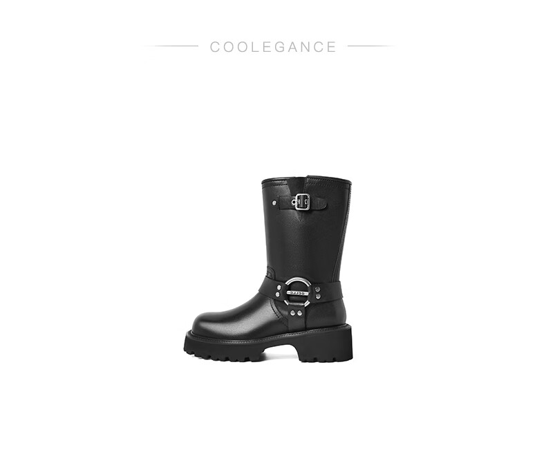 百丽厚底金属扣机车靴女23冬季新款潮流百搭休闲靴BEM60DS3预售 黑色 34