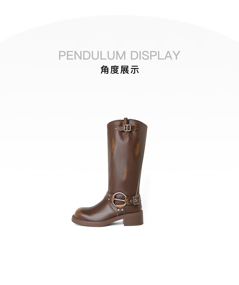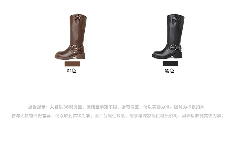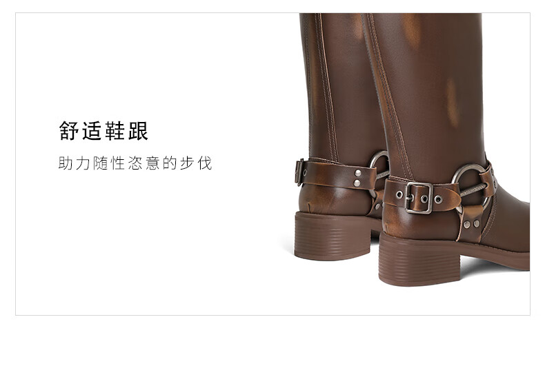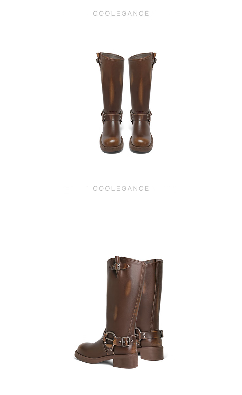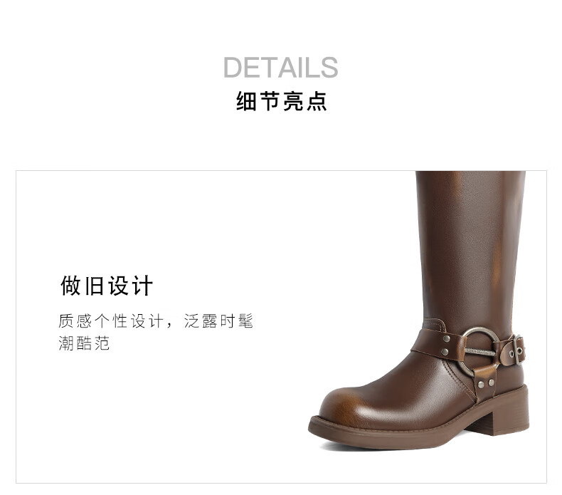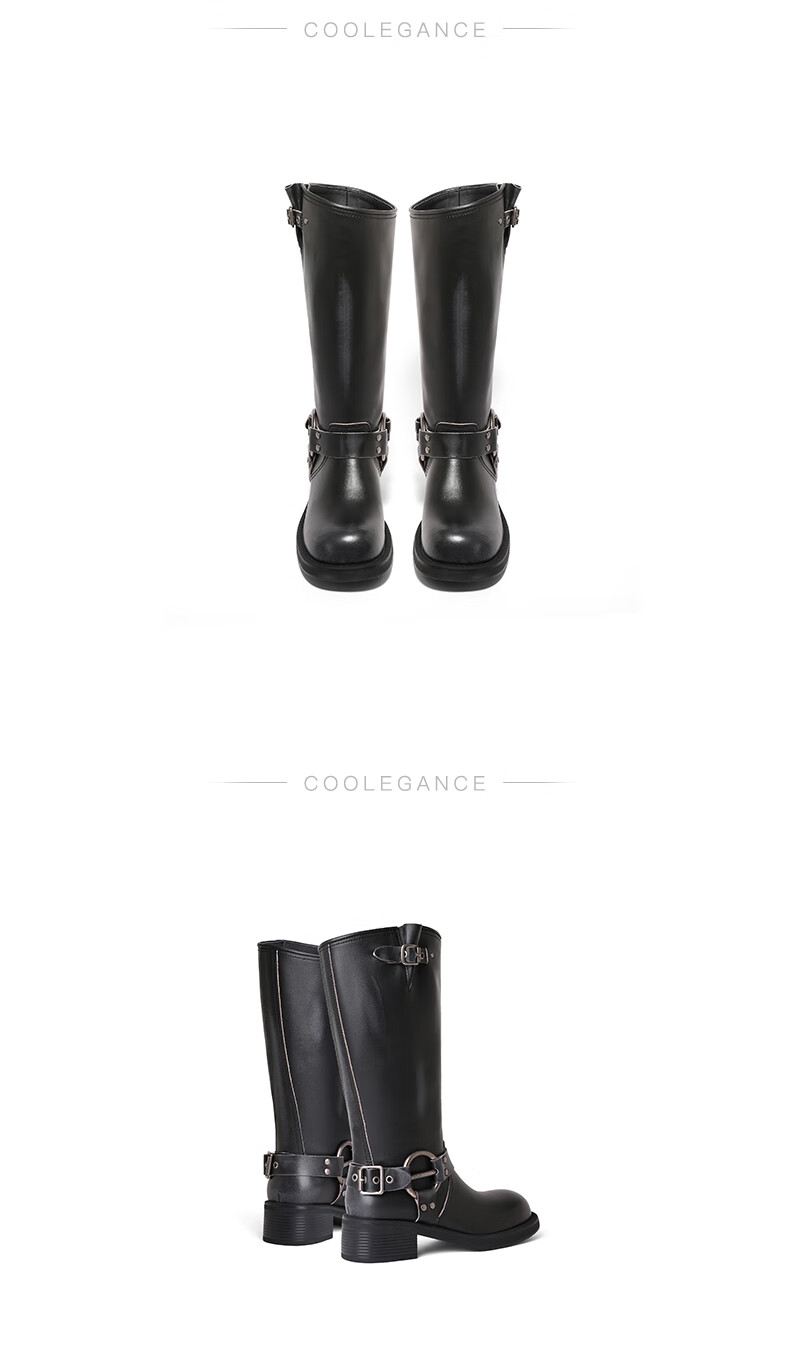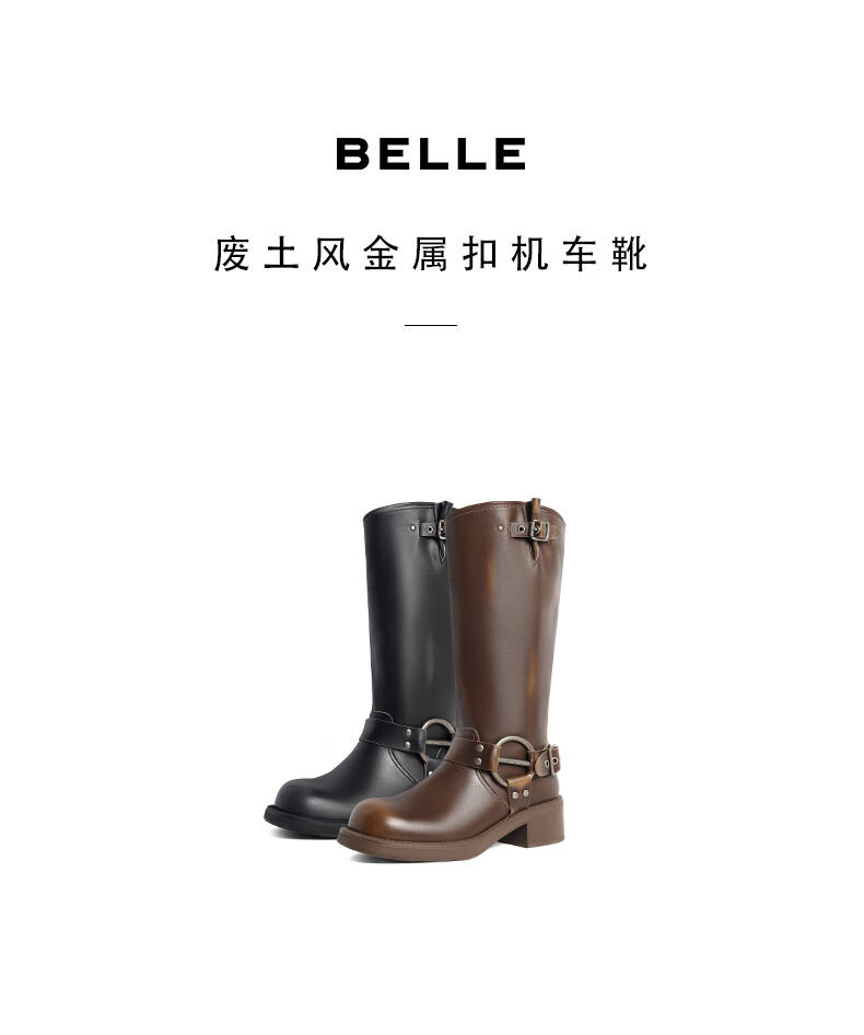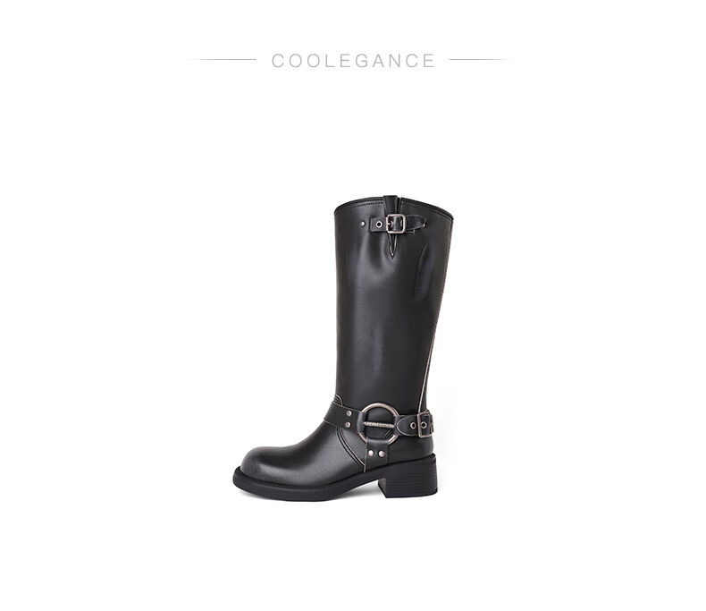 百丽废土风金属扣机车靴女23冬季新款潮酷百搭骑士靴B1527DG3 黑色 34