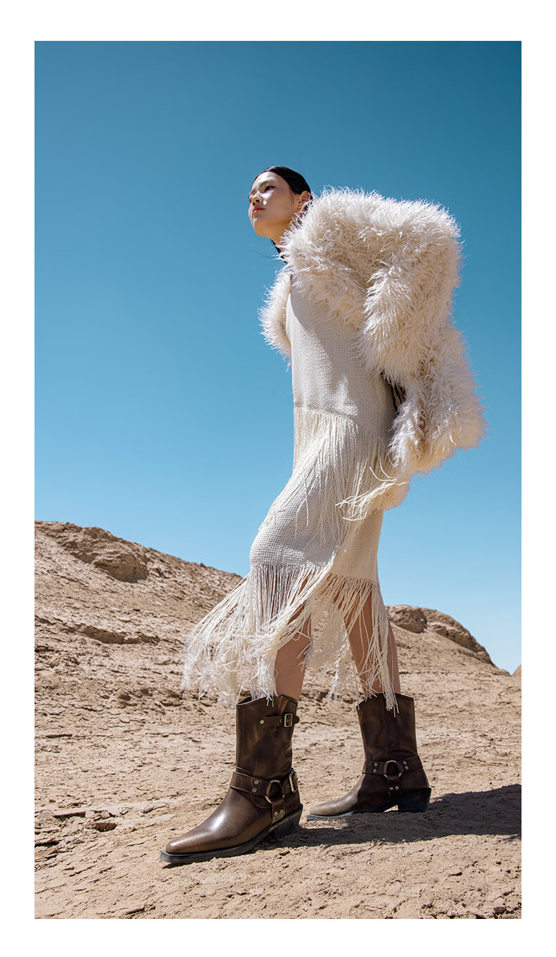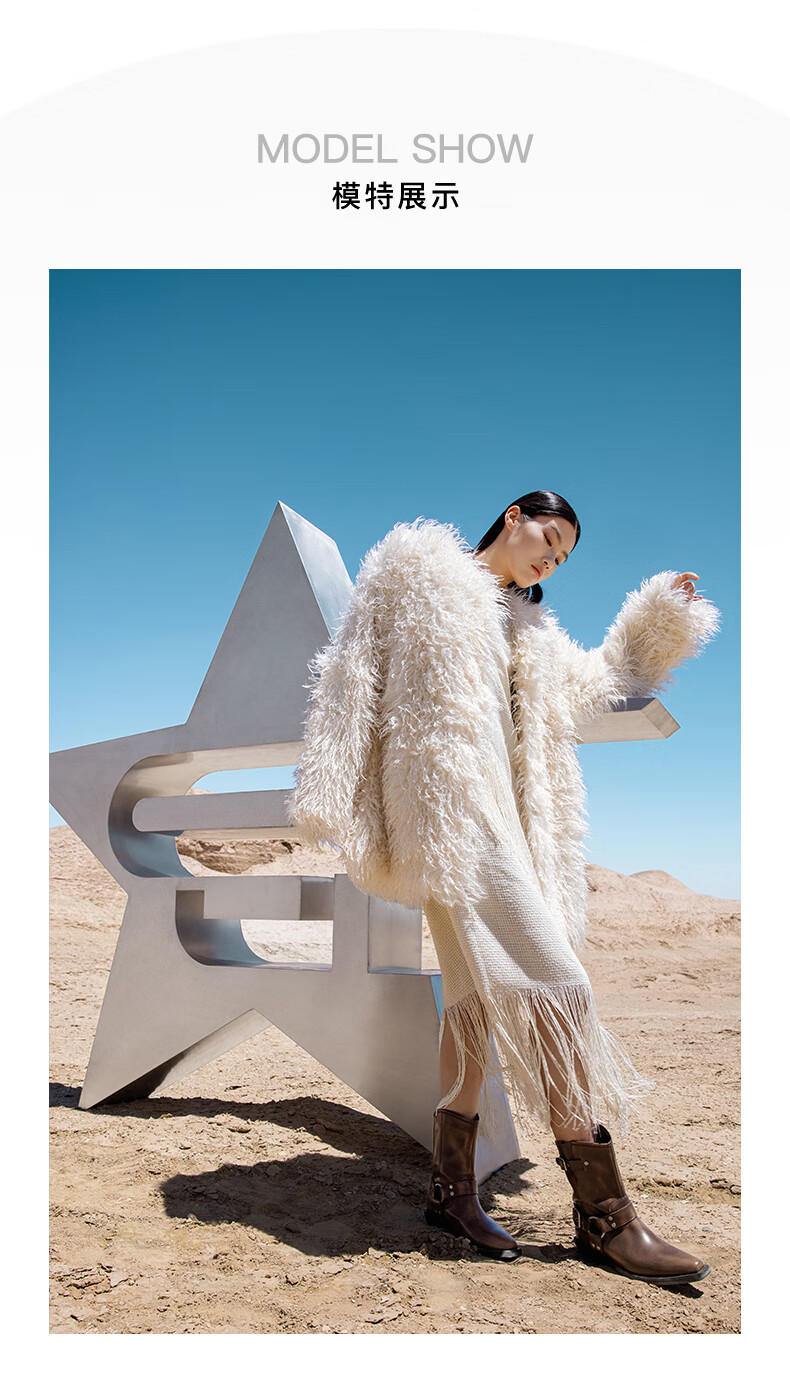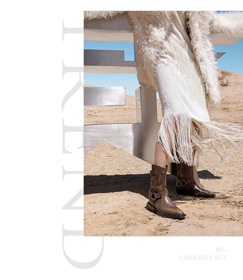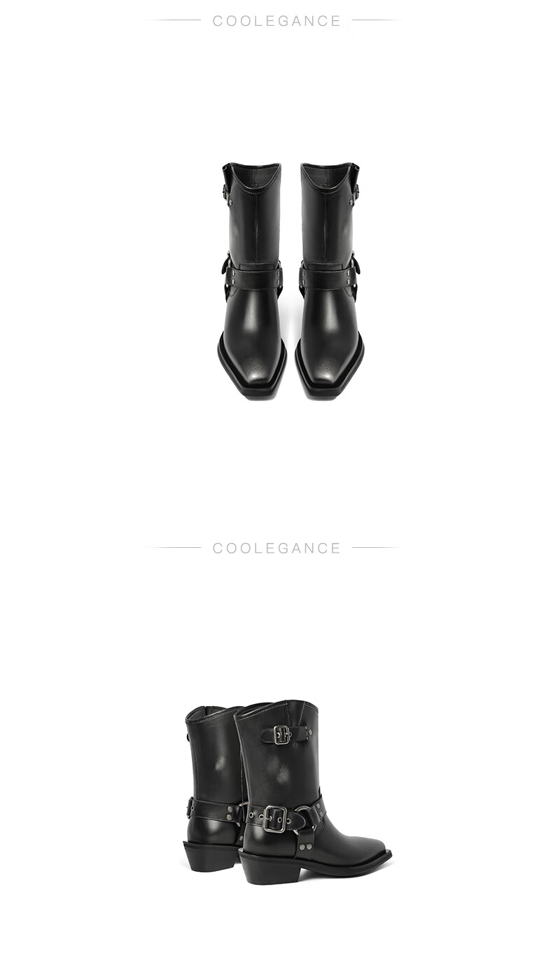 百丽复古金属扣机车靴女23冬季新款潮酷牛皮骑士靴B1491DZ3预售 棕色 34