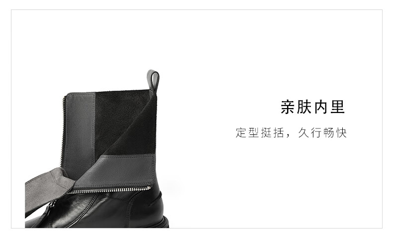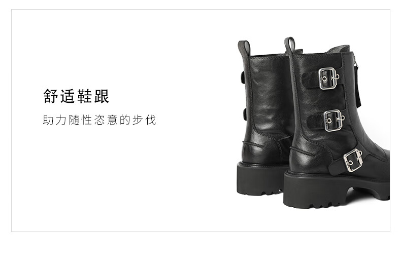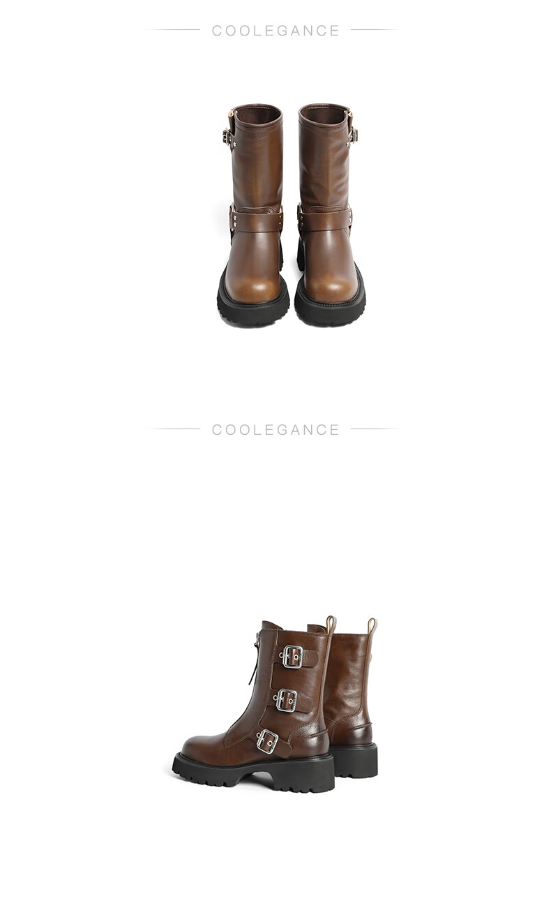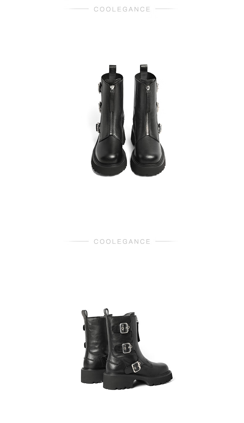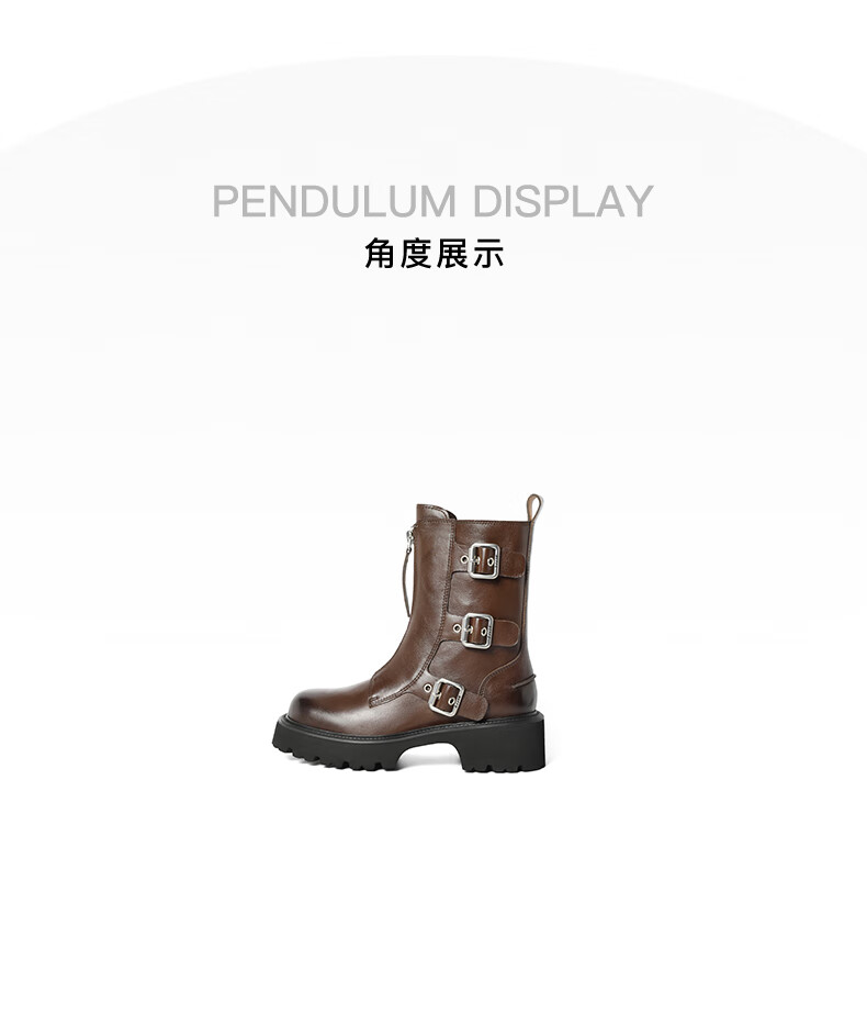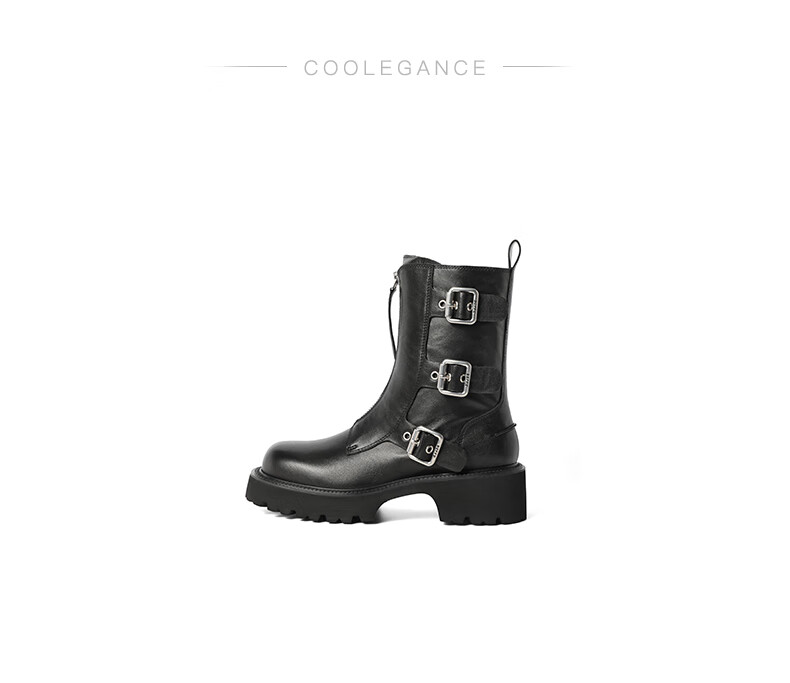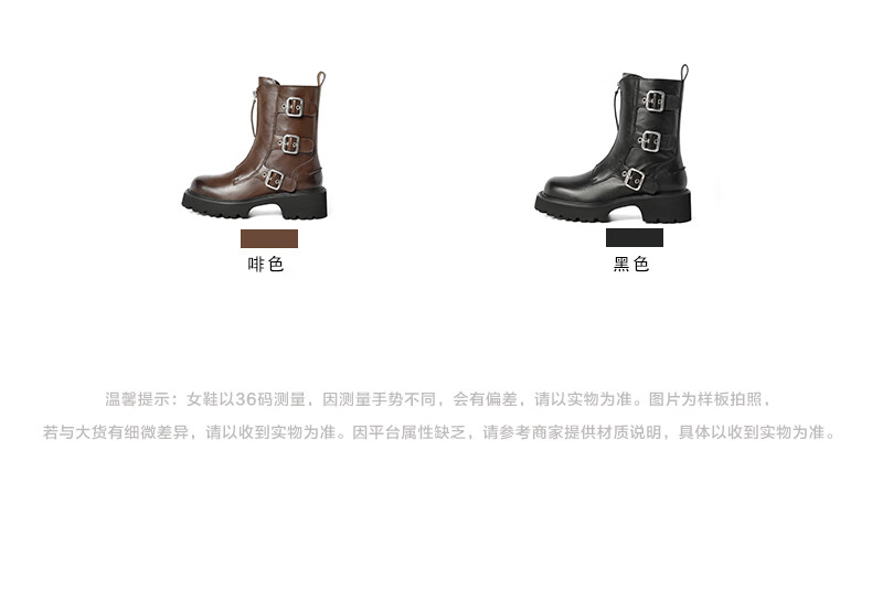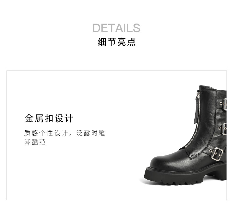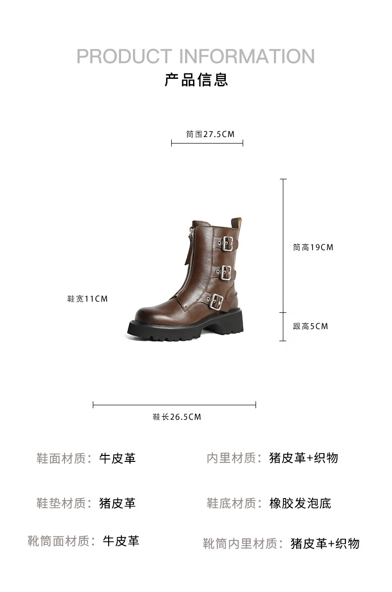 百丽个性金属扣机车靴女23冬季新款潮流百搭休闲靴BEM67DZ3预售 啡色 37