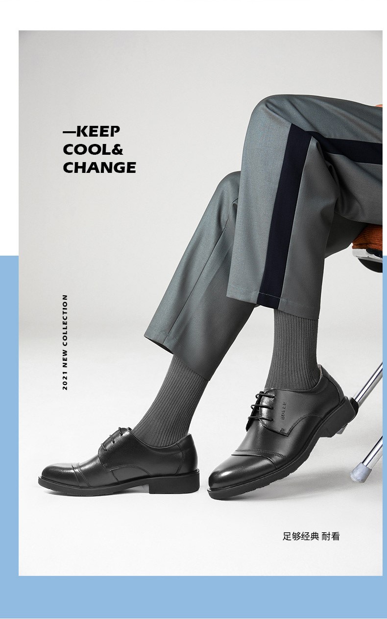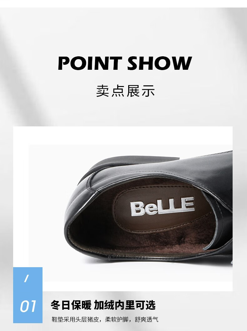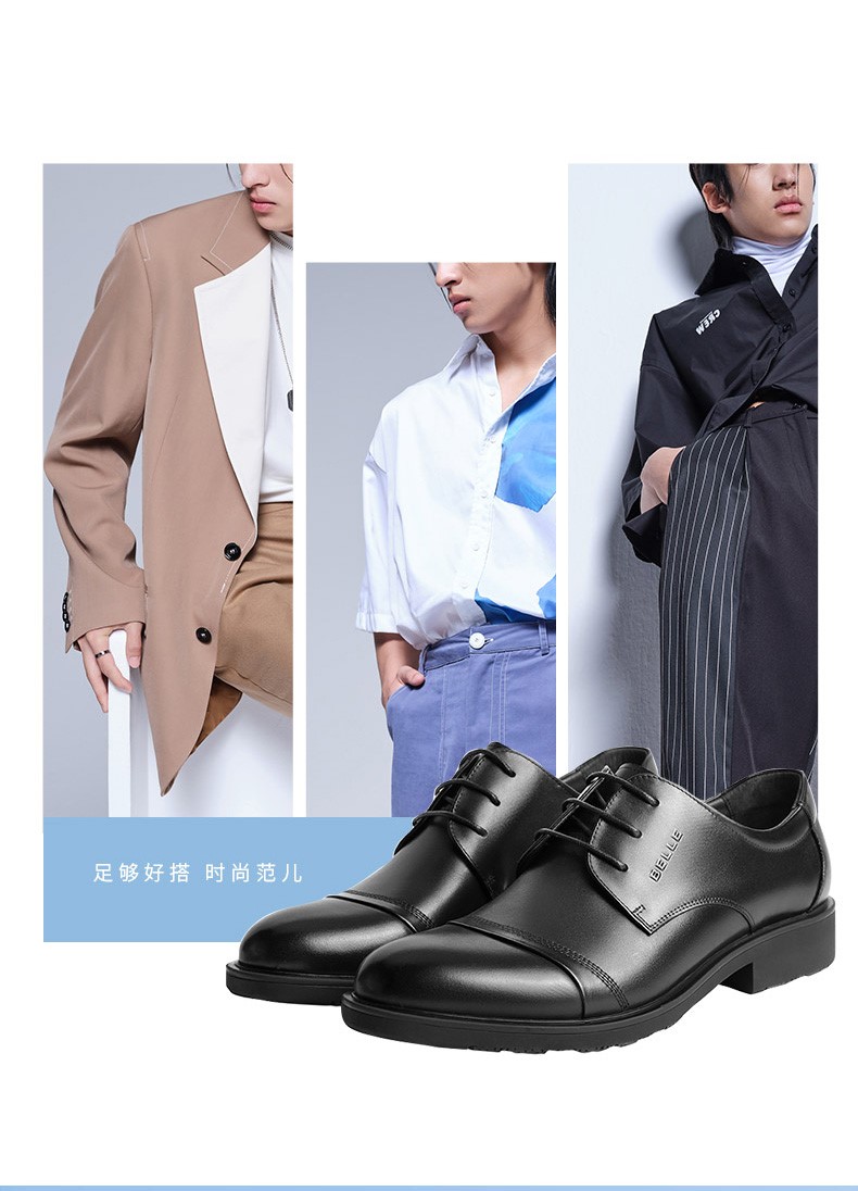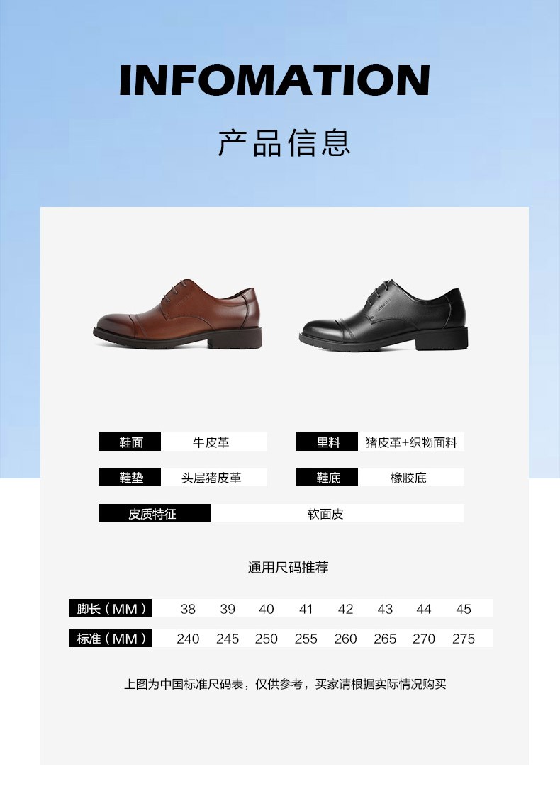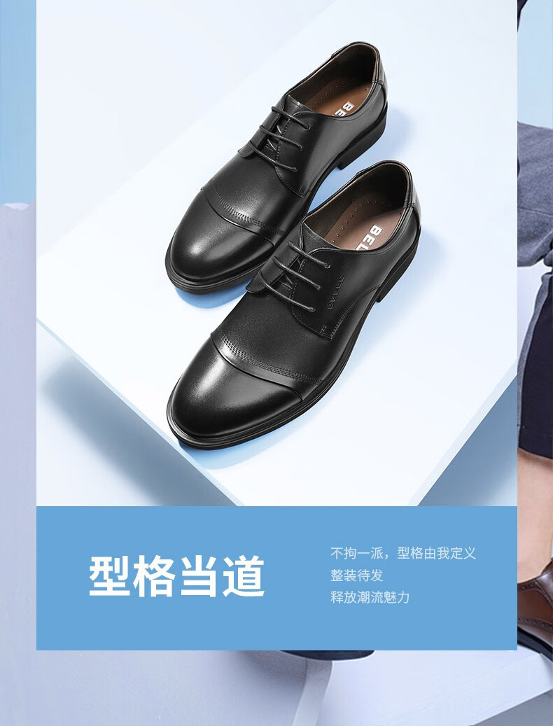 百丽正装鞋男皮鞋牛皮圆头婚鞋商务休闲皮鞋3UX01CM5 棕色 43