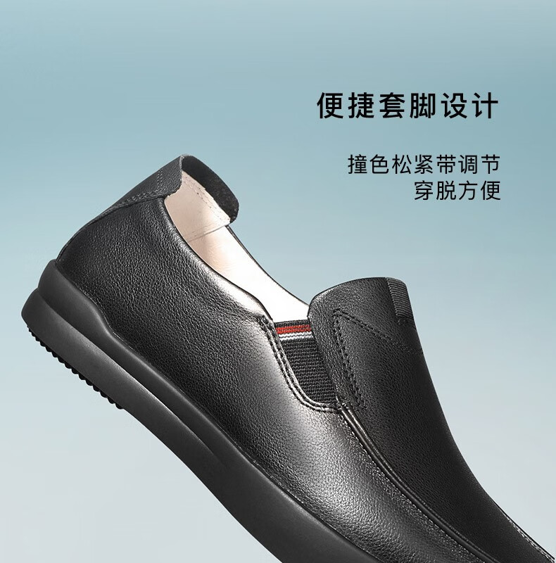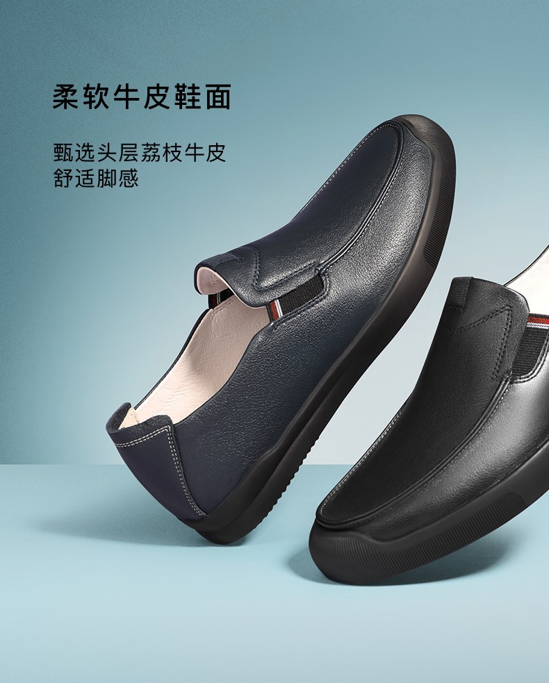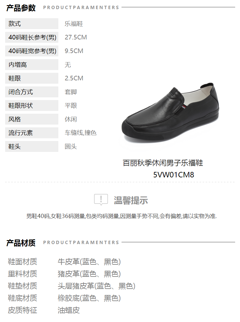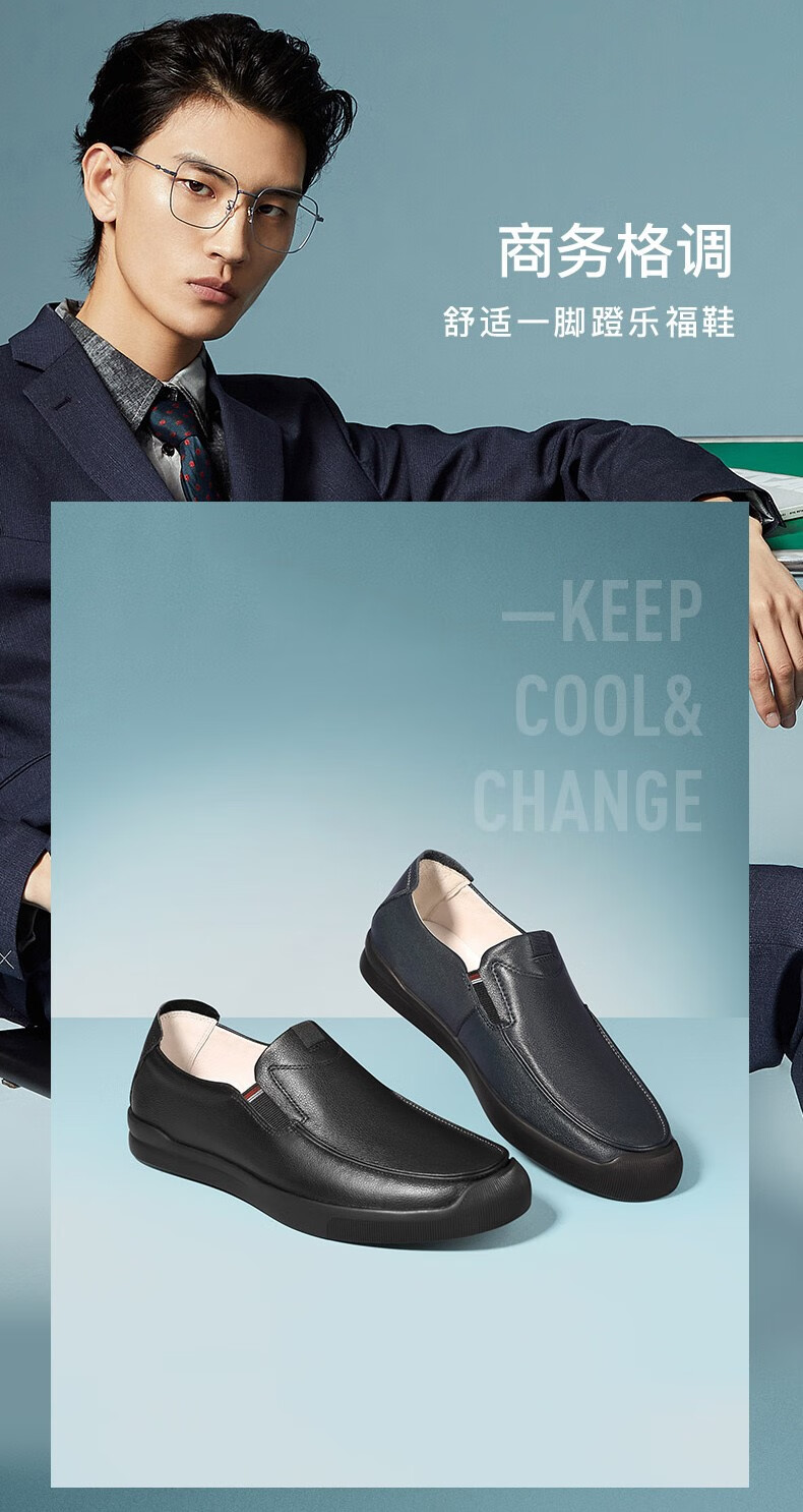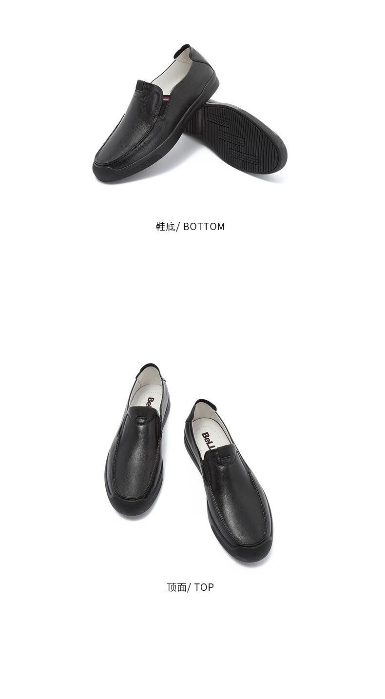 百丽休闲男鞋豆豆鞋男商场同款牛皮舒适单鞋5VW01CM8 黑色 42